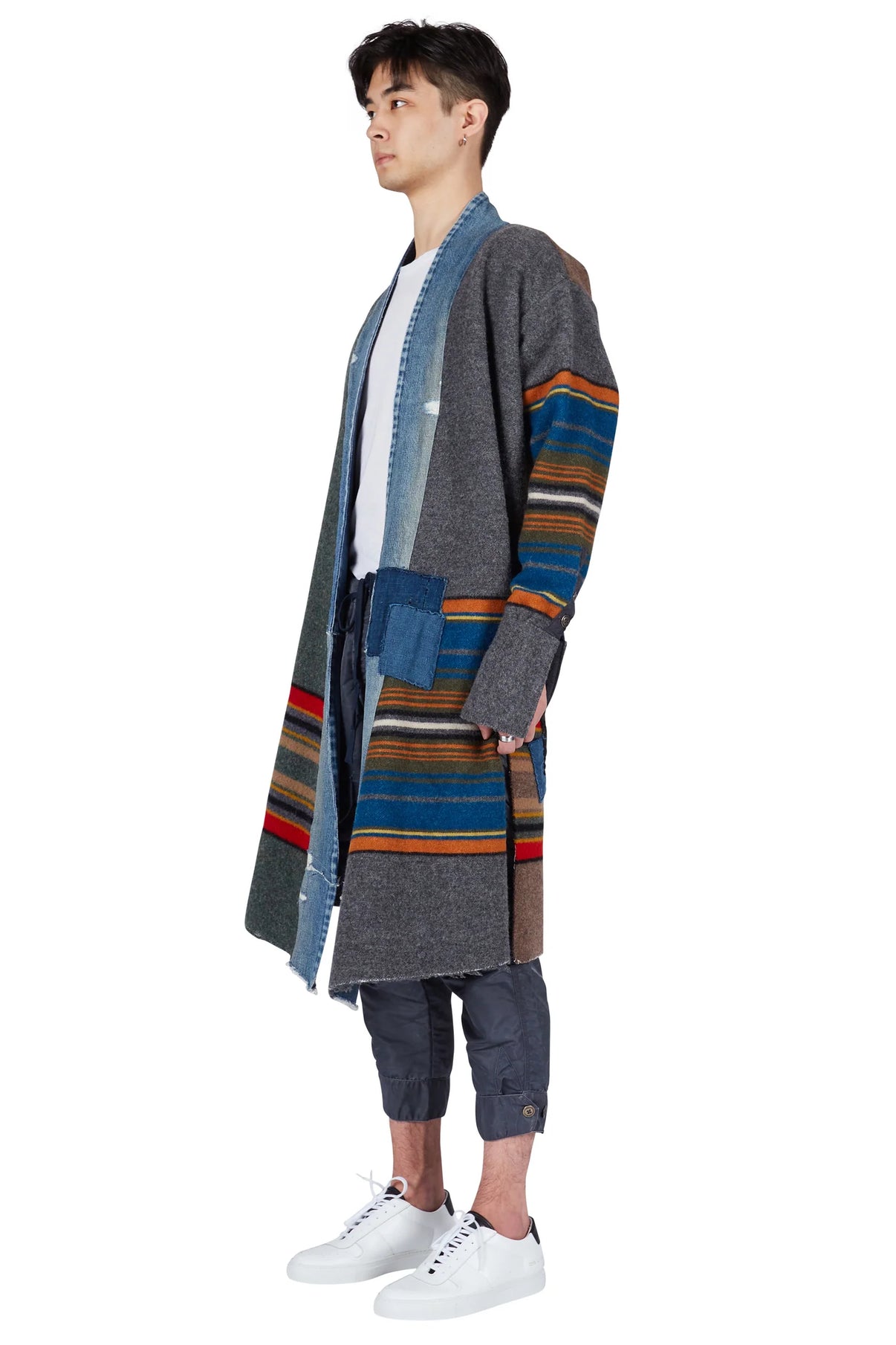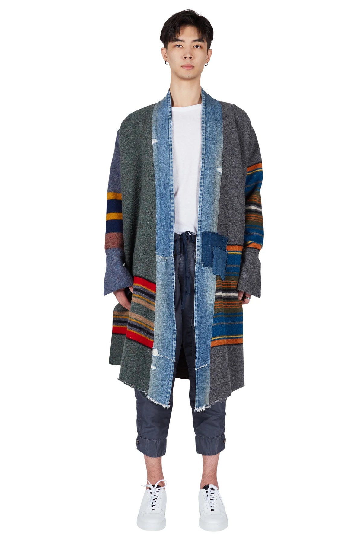 Greg Lauren Mixed Long Blanket Coat Grey/Blue/Red