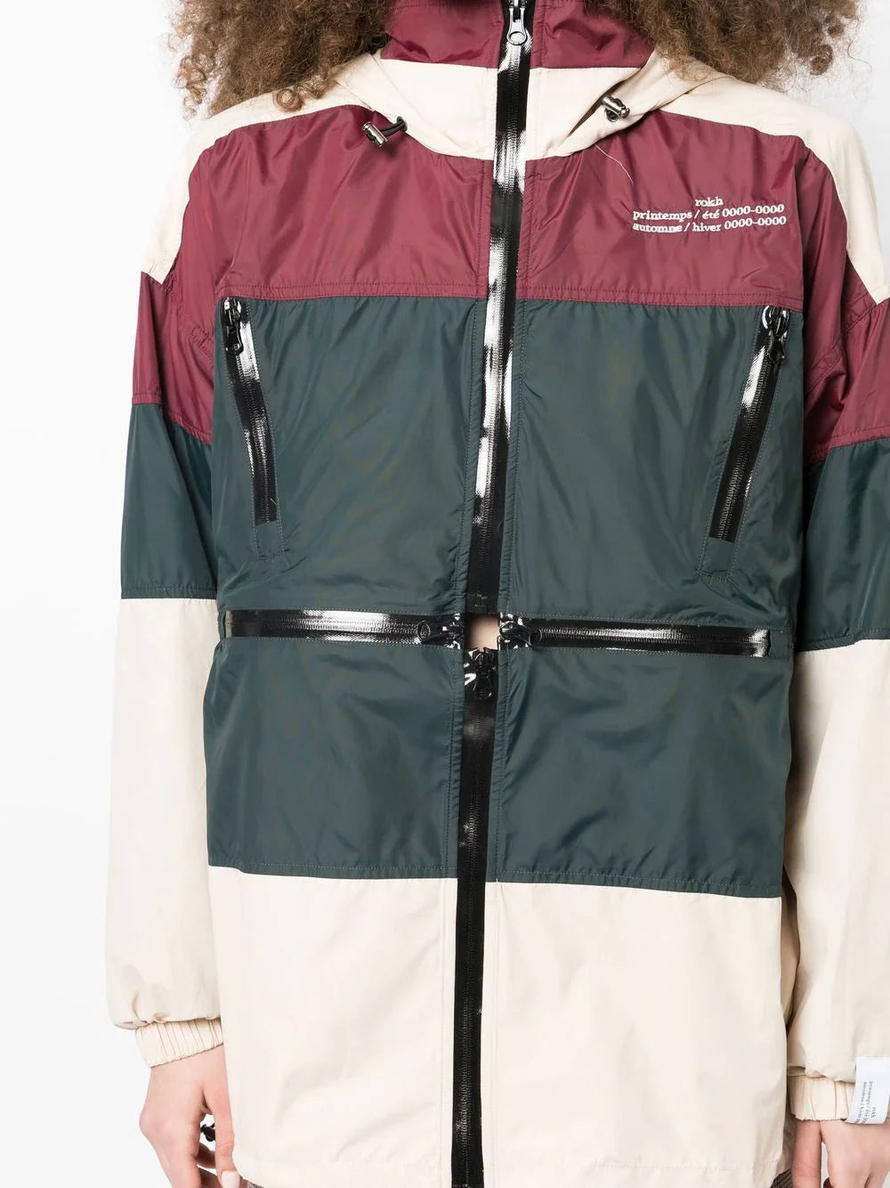 Rokh NL Multi Zip Windbreaker Beige Green Burgundy