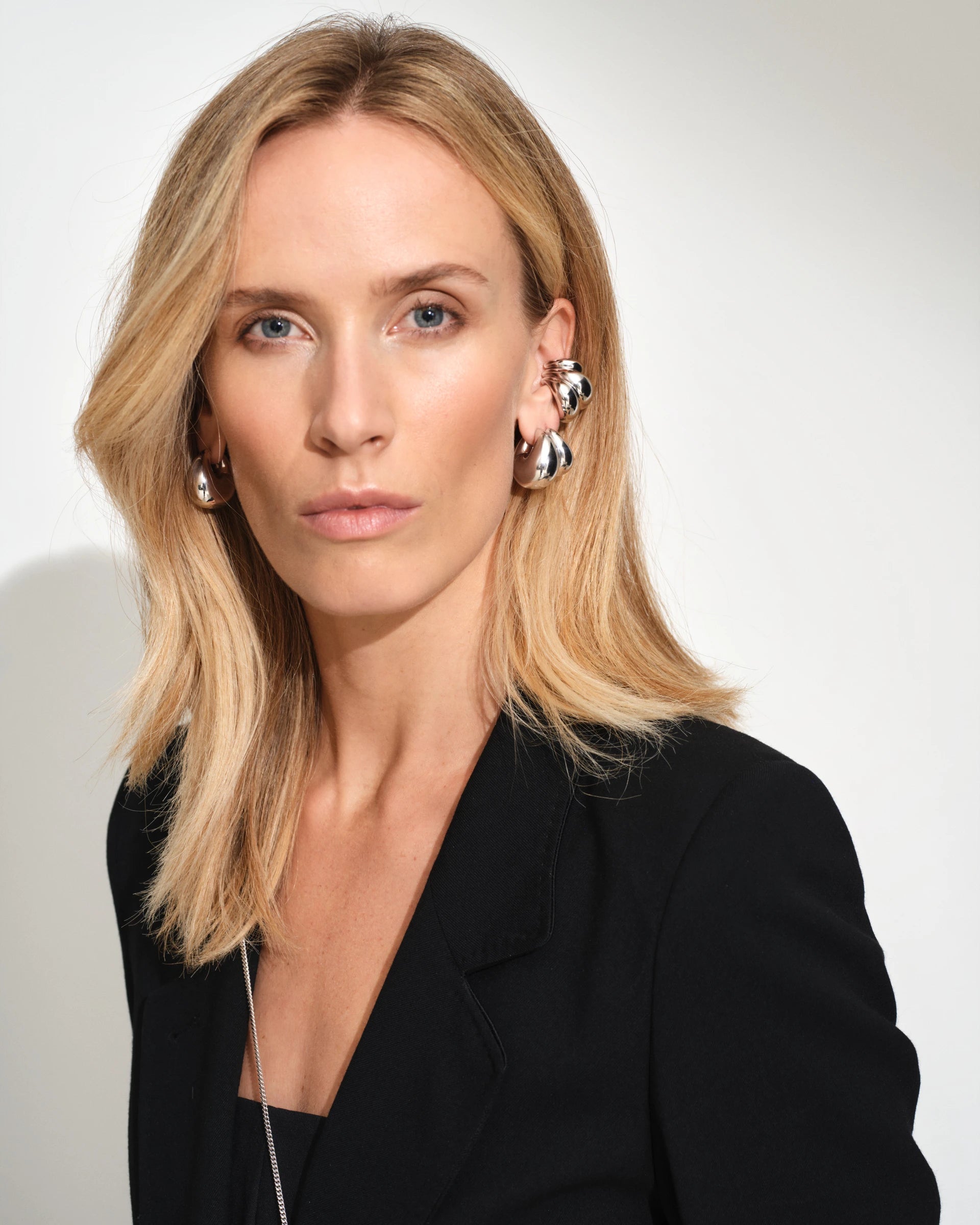 Made with 925 sterling silver in a polished white rhodium plating. All metals are 100% recycled.