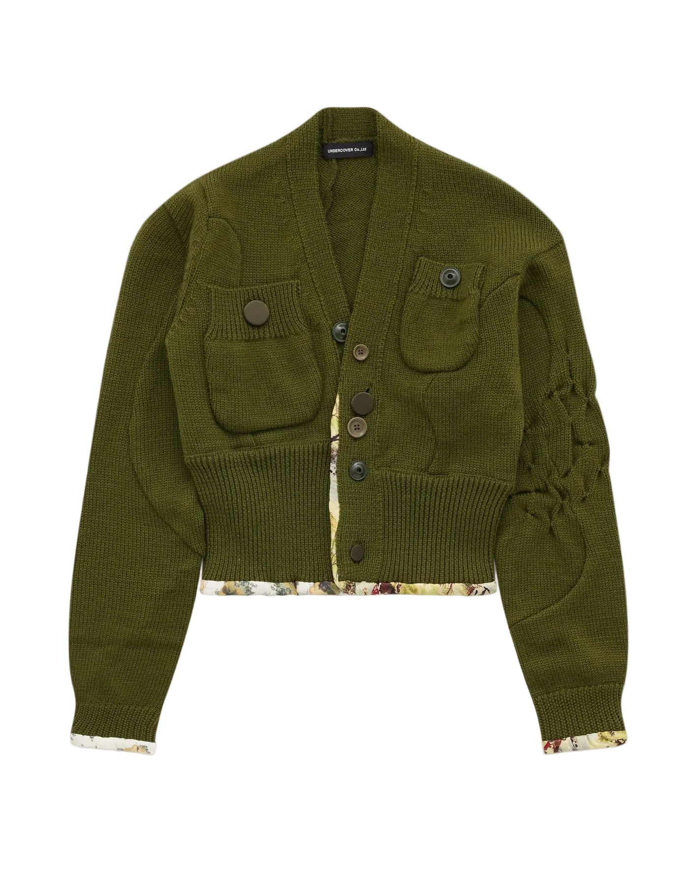 ASYMMETRIC FLORAL-LINED CARDIGAN