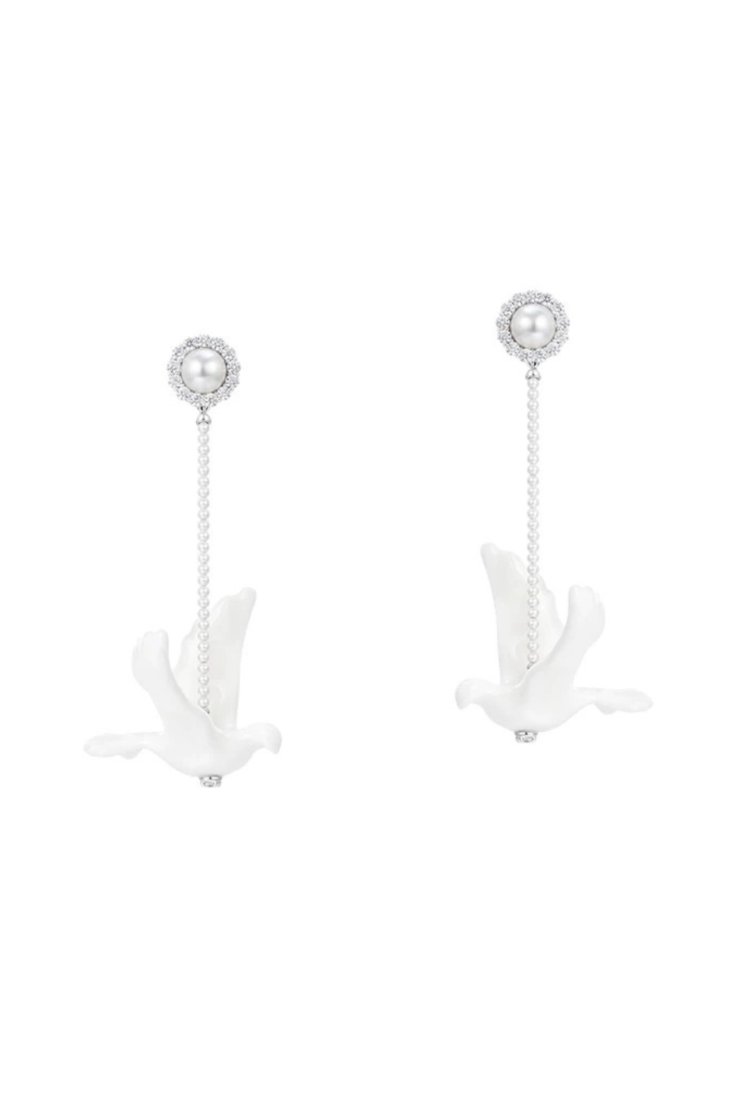 SHUSHU/TONG CERAMICS DOVE AND PERAL DROP EARRINGS_WHITE